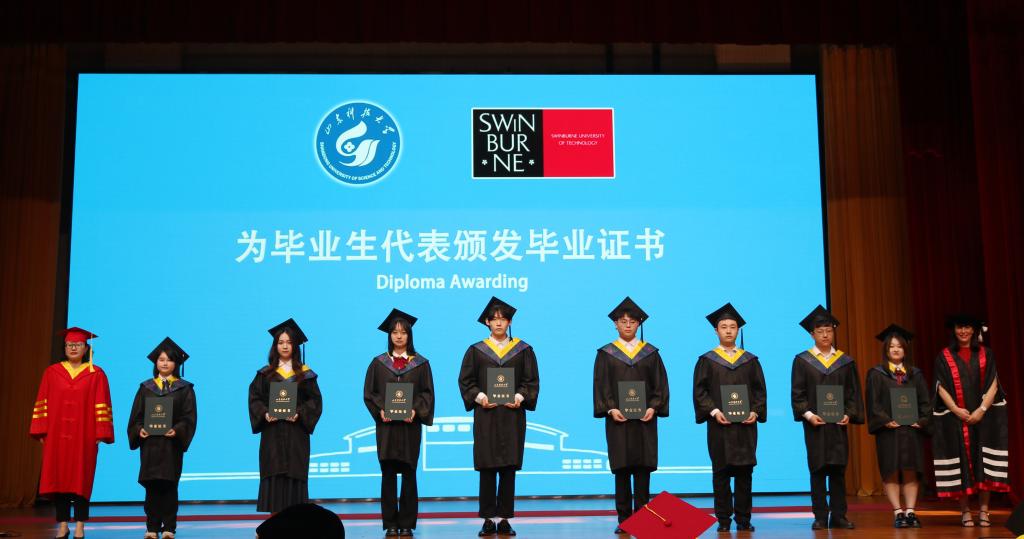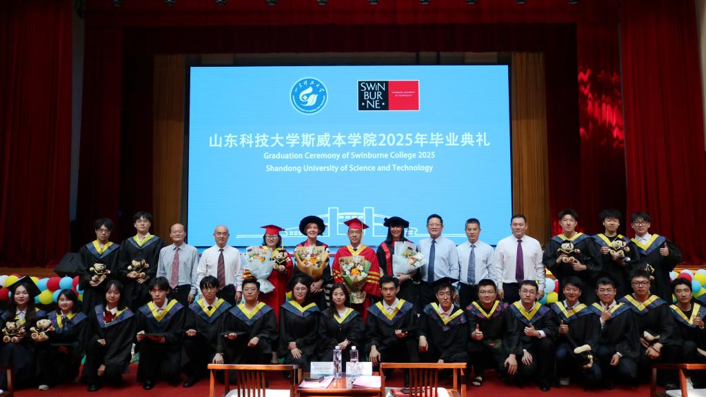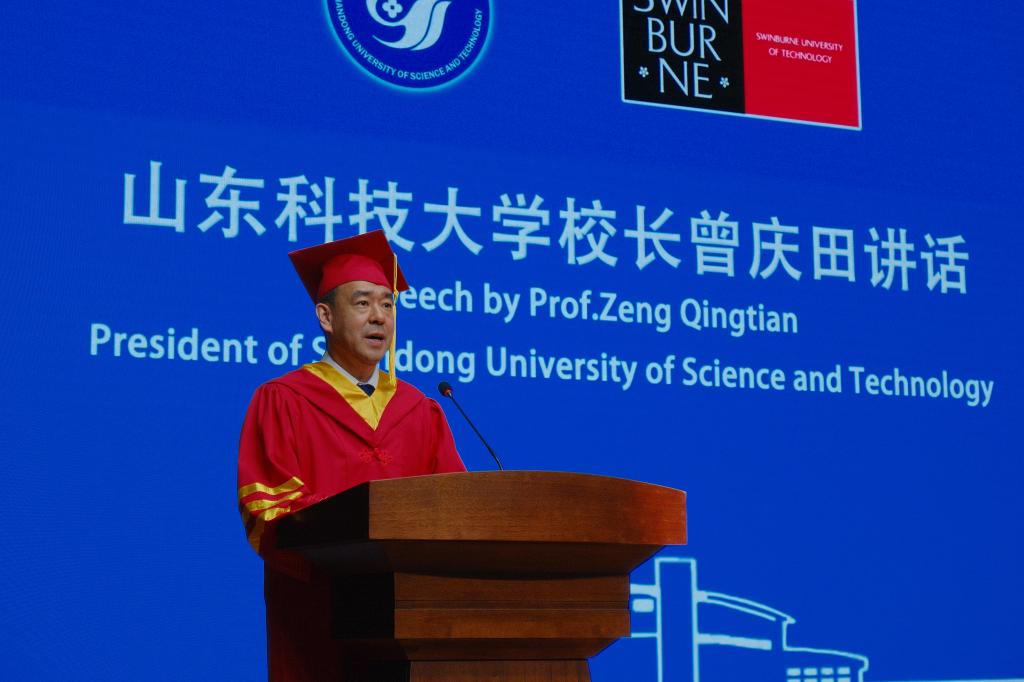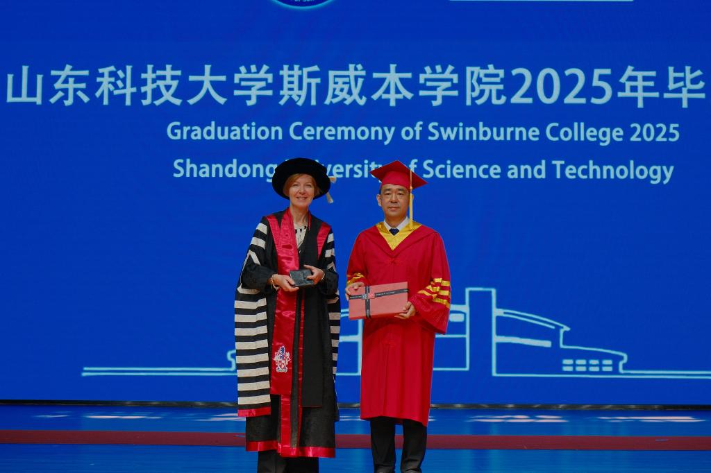 驪音落處別青蔥,征帆起時赴山河。6月21日,山東科技大學(xué)斯威本學(xué)院2025年畢業(yè)典禮在藝體樓舉行。斯威本科技大學(xué)校長Pascale Quester、副校長Bronte Neyland,山東科技大學(xué)校長曾慶田、副校長董海榮,澳大利亞未來教育研究院代表Roger Li,山東科技大學(xué)濟南校區(qū)黨委書記梁賽江、主任郭加書,山東科技大學(xué)斯威本學(xué)院院長劉國棟等出席典禮。濟南校區(qū)有關(guān)領(lǐng)導(dǎo)和各部門、單位負(fù)責(zé)人,家長代表,教師代表,學(xué)院全體畢業(yè)生和在校生代表等參加畢業(yè)典禮。典禮由學(xué)院黨委書記孫國強主持。