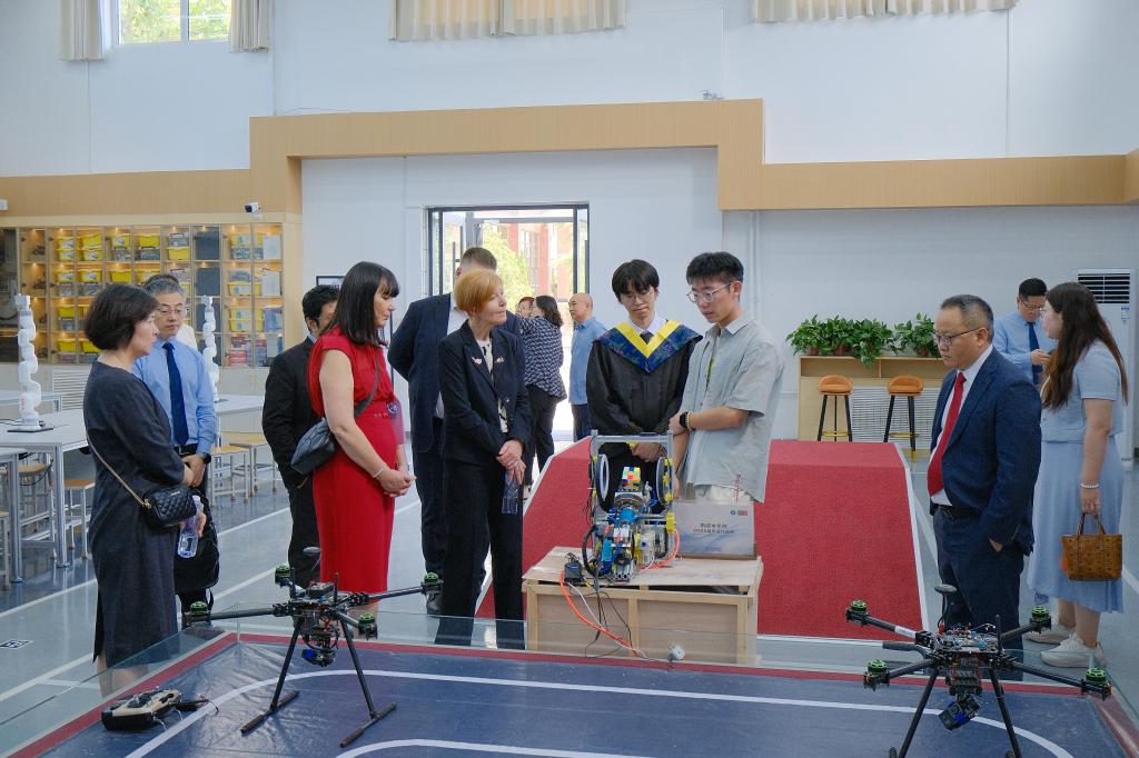 典禮結(jié)束后,與會領(lǐng)導(dǎo)共同參觀了“未來之境”工業(yè)設(shè)計專業(yè)首屆畢業(yè)設(shè)計作品展、智能制造實驗室、智能機器人產(chǎn)教融合中心、圖書館等。(攝影:朱凱忠、王道駿、姜秀毅、孟繁棋、趙昱斌)
