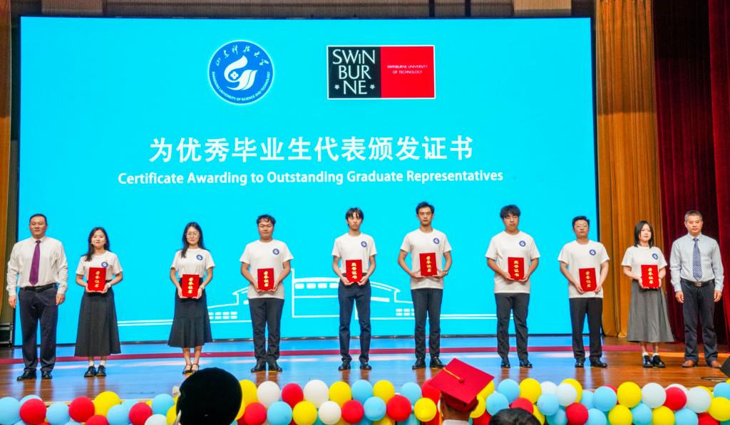 曾慶田強調(diào),斯威本學(xué)院首屆畢業(yè)生見證了學(xué)院的蓬勃發(fā)展,也實現(xiàn)了個人的成長蛻變。面對即將遠行的學(xué)子,他深情寄語,一要厚植家國情懷,弘揚“留學(xué)報國”傳統(tǒng)。無論身處何方,都要時刻關(guān)注國家發(fā)展需求,堅決維護國家利益,讓“留學(xué)報國”的紅色傳統(tǒng)綻放更加耀眼的光芒。二要樹立全球視野,應(yīng)對“智能多元”挑戰(zhàn)。以開放的視野、包容的心態(tài)在應(yīng)對全球性挑戰(zhàn)中彰顯青年擔(dān)當(dāng),在逐夢之路上奮力前行,在變局中開拓人生新局。三要砥礪奮斗精神,擦亮“實干興邦”底色。在專業(yè)領(lǐng)域里勇攀高峰,在崗位實踐中淬煉真知,在國際競爭中彰顯中國力量,以平凡鑄就非凡,從優(yōu)秀實現(xiàn)卓越,讓璀璨年華與家國同頻,與時代共進。