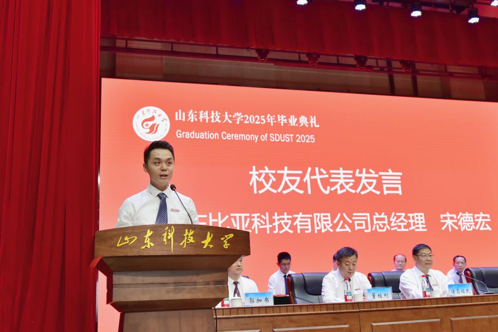 畢業(yè)生代表劉博涵發(fā)言,分享了自己在科大的成長(zhǎng)與收獲,深情表達(dá)了對(duì)母校的感恩之情與美好祝愿,立志將青春揮灑在祖國(guó)大地上。校友代表宋德宏深情回顧了在母校奮斗成長(zhǎng)的青春歲月,對(duì)母校的悉心培育表達(dá)了誠(chéng)摯的感謝,并勉勵(lì)畢業(yè)生秉持堅(jiān)韌不拔、開拓創(chuàng)新的品格,努力成為具備工匠精神的時(shí)代青年。教師代表姜帥回顧了與同學(xué)們教學(xué)相長(zhǎng)的難忘歲月,勉勵(lì)大家始終心懷家國(guó),始終保持對(duì)知識(shí)的渴求,不斷拓寬視野,提升綜合能力,以樂觀積極的心態(tài)迎接挑戰(zhàn),書寫屬于更加精彩的人生篇章。