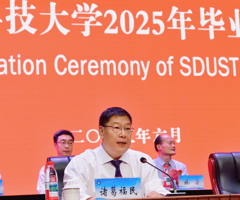 曾慶田以“啟航2025,共赴十年之約”為題,為畢業(yè)生上了大學(xué)“最后一課”。他代表學(xué)校向圓滿完成學(xué)業(yè)的2025屆全體本科畢業(yè)生,致以熱烈的祝賀和美好的祝福,向陪伴畢業(yè)生成長(zhǎng)成才的老師、父母和親友表示崇高的敬意和衷心的感謝,向前來(lái)觀禮的各位校友表示誠(chéng)摯的歡迎和親切的問候。他深情回顧了同學(xué)們在山科四年的成長(zhǎng)歷程和美好記憶。他指出,大學(xué)四年,同學(xué)們與學(xué)校風(fēng)雨同舟、勠力同心,從2021到2025的成長(zhǎng)軌跡,將永遠(yuǎn)記錄在母校的“日志”上。希望同學(xué)們以當(dāng)下為起點(diǎn),眺望今后十年,將個(gè)人夢(mèng)想與國(guó)家基本實(shí)現(xiàn)社會(huì)主義現(xiàn)代化的宏偉藍(lán)圖同頻共振,與學(xué)校建設(shè)世界高水平應(yīng)用研究型大學(xué)的奮斗目標(biāo)緊密交織,共同譜寫強(qiáng)國(guó)建設(shè)、強(qiáng)校跨越的璀璨篇章。