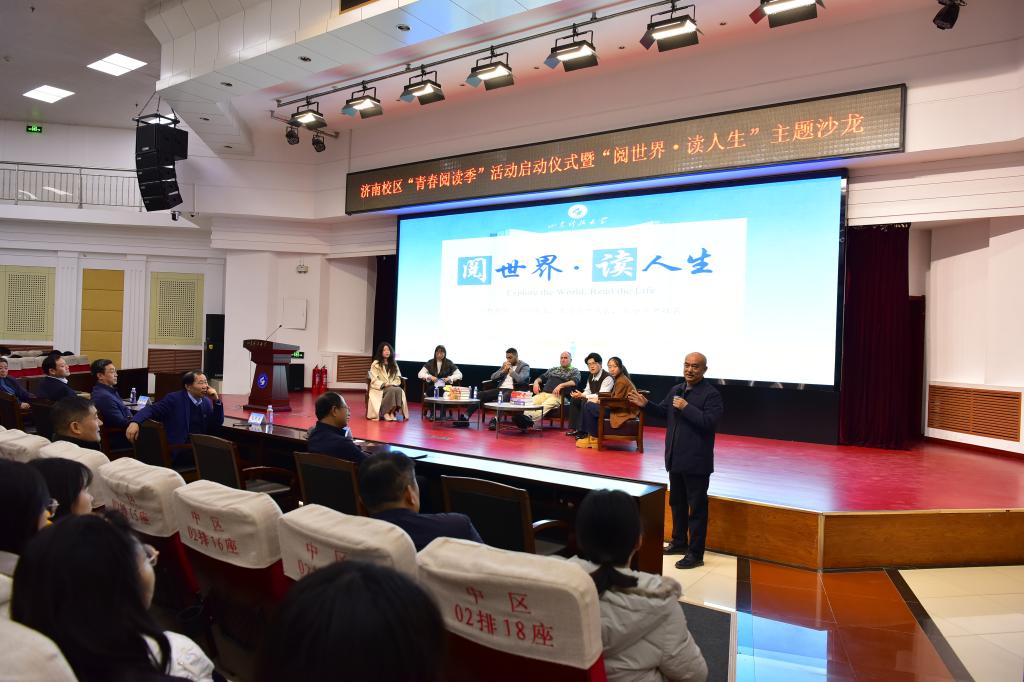 為進(jìn)一步營造濃厚的校園閱讀氛圍,激發(fā)師生的閱讀熱情,搭建良好閱讀平臺(tái),10月28日,濟(jì)南校區(qū)“青春閱讀季”活動(dòng)啟動(dòng)儀式暨“閱世界·讀人生”主題沙龍在圖書館報(bào)告廳舉行。活動(dòng)由校區(qū)黨委委員兼黨政辦公室主任孫國強(qiáng)主持。