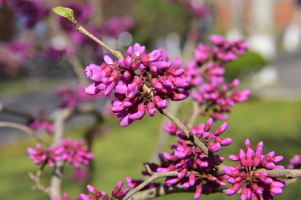 紫荊花在風中搖曳,嫩小的花骨含苞待放,是勃勃生命的象征,也是美麗校園回應時節(jié)的含蓄表達。