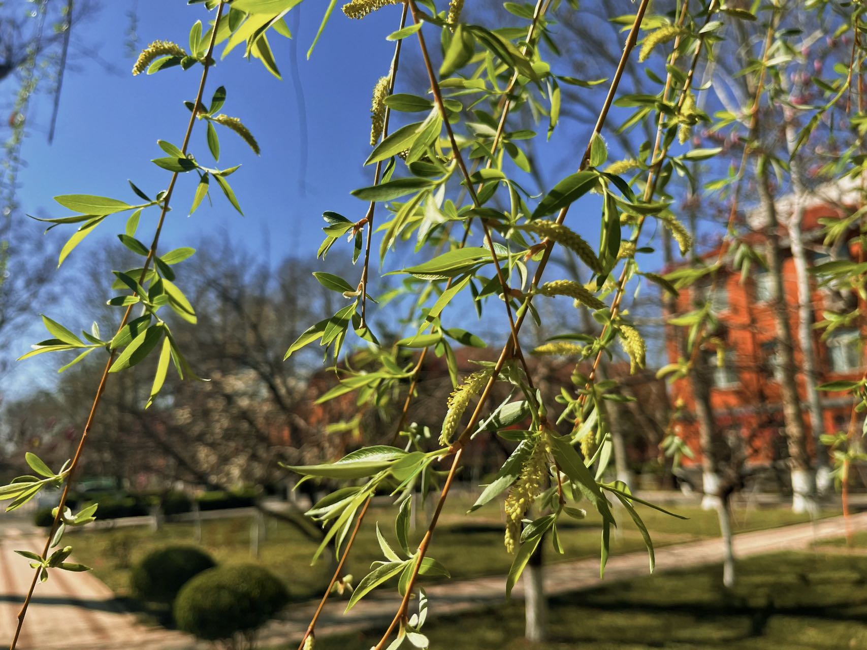 發(fā)芽的柳枝是春天的信使,想把春天留下,也想把青春留住,明天就在手中,奮斗正當其時。