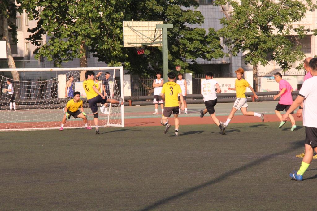 下午5時(shí)許,工會(huì)董向陽(yáng)主席致辭,并向畢業(yè)生參賽隊(duì)員贈(zèng)送禮品,隨即比賽正式開始。本次比賽采取半場(chǎng)九人制,年齡優(yōu)勢(shì)讓畢業(yè)生隊(duì)在開場(chǎng)后迅速占據(jù)主動(dòng),多次獲得得分良機(jī),但運(yùn)氣稍欠,直到臨近半場(chǎng)結(jié)束,畢業(yè)生隊(duì)打出一次成功的邊路組合進(jìn)攻,由門前隊(duì)員搶點(diǎn)得分,打破了場(chǎng)上僵局。下半場(chǎng),教工隊(duì)體能明顯下降,畢業(yè)生隊(duì)抓住機(jī)會(huì)再下一城,2:0領(lǐng)先。隨后,教工隊(duì)展開最后的反攻,多次覓得良機(jī),無(wú)奈臨門一腳總是欠缺,但還是在終場(chǎng)前抓住機(jī)會(huì)扳回一球,最終比分定格在1:2。