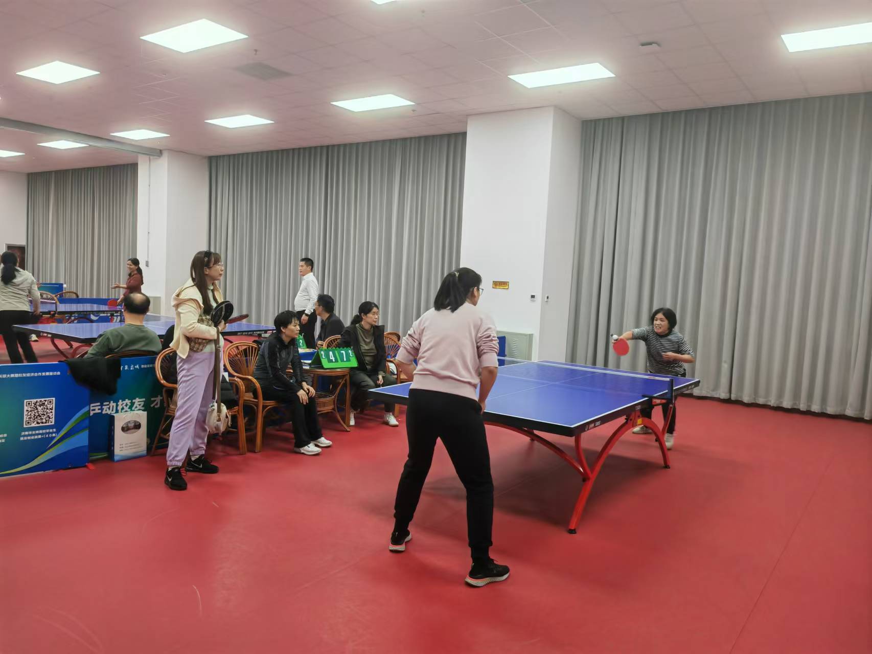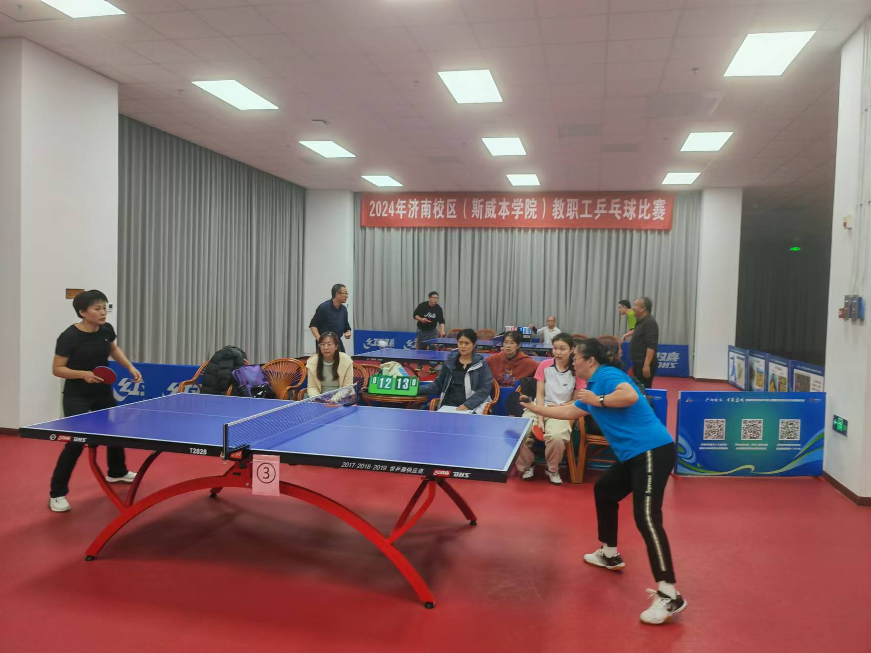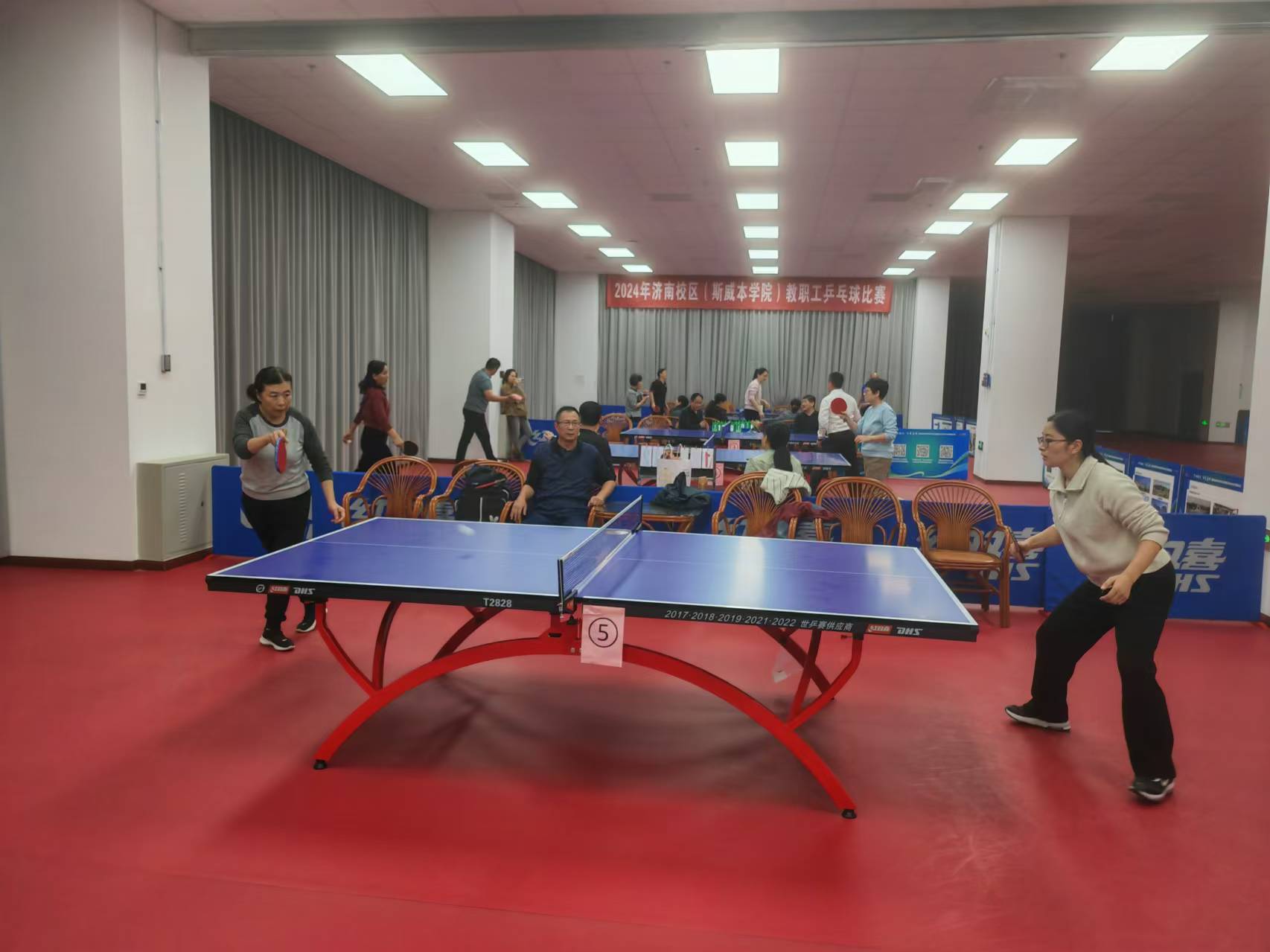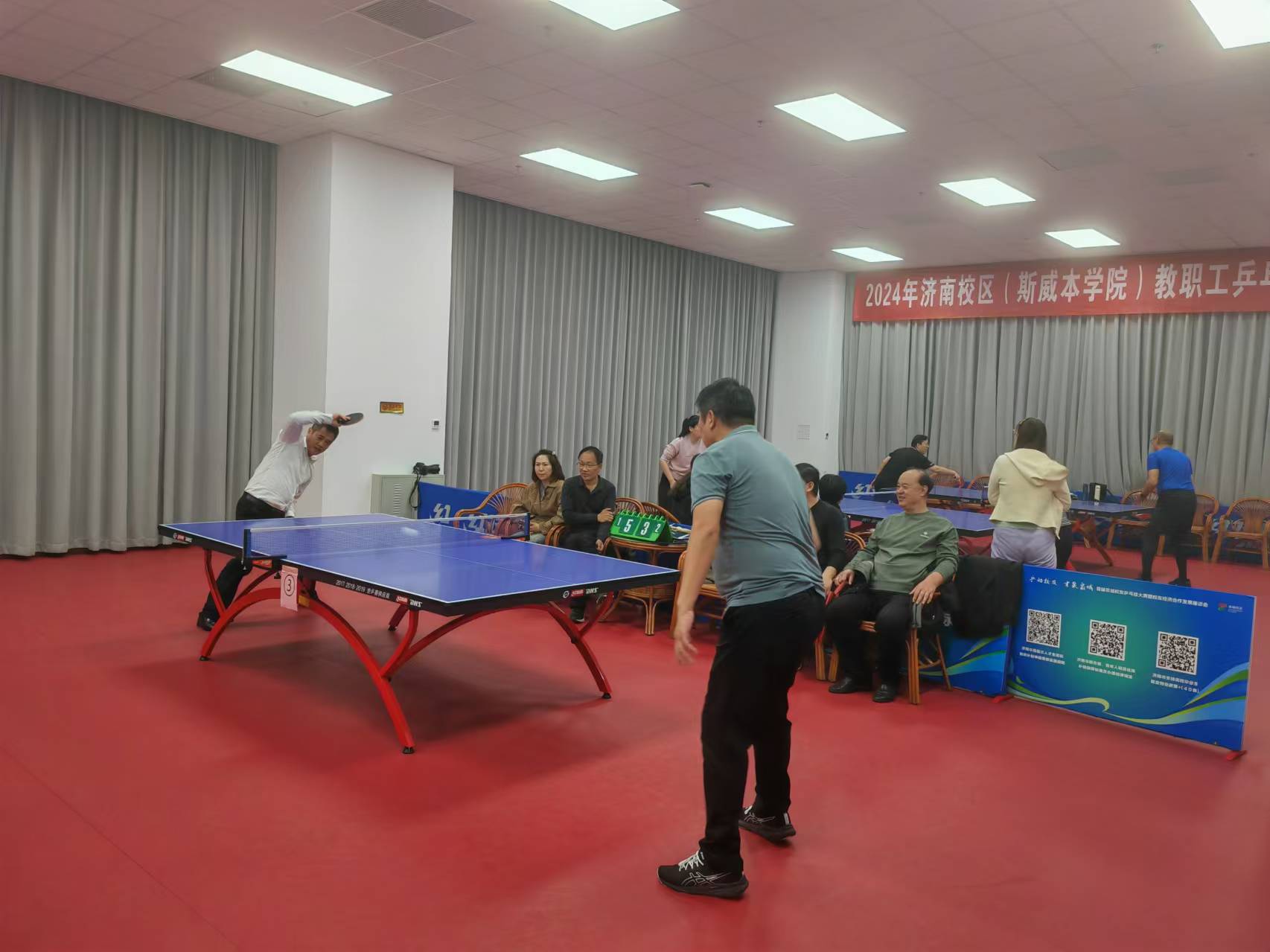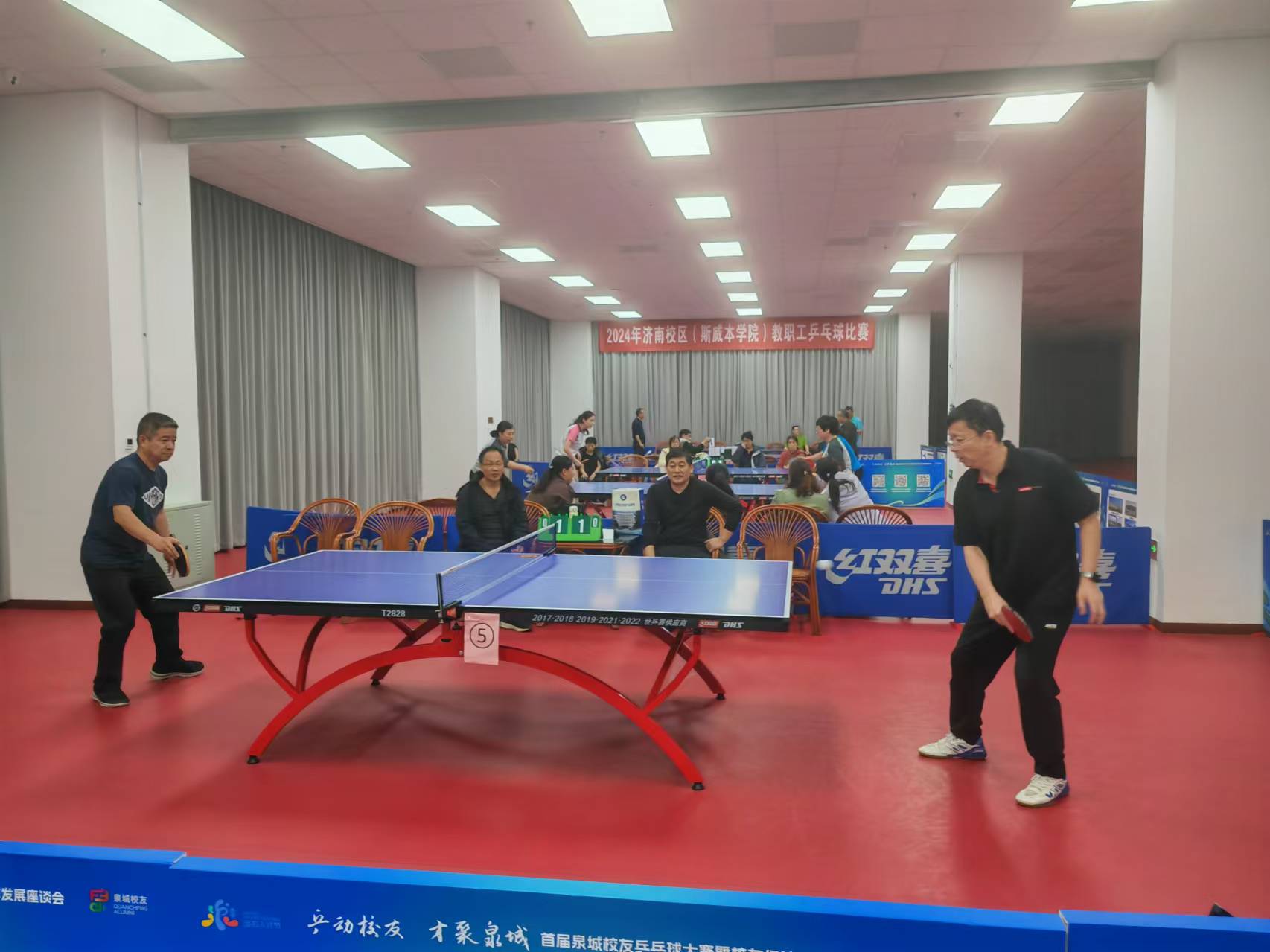 為推進(jìn)濟(jì)南校區(qū)校園文化建設(shè),激發(fā)廣大教職工立德樹(shù)人、愛(ài)崗敬業(yè)、高質(zhì)量發(fā)展的使命感和工作熱情,提升乒乓球愛(ài)好者的技能和水平,校區(qū)工會(huì)舉辦了2024年教職工乒乓球個(gè)人排名比賽。比賽分為小組內(nèi)循環(huán)積分賽和晉級(jí)淘汰賽兩個(gè)階段,晉級(jí)16強(qiáng)隊(duì)員均需完成所需全部比賽,最終決出名次。