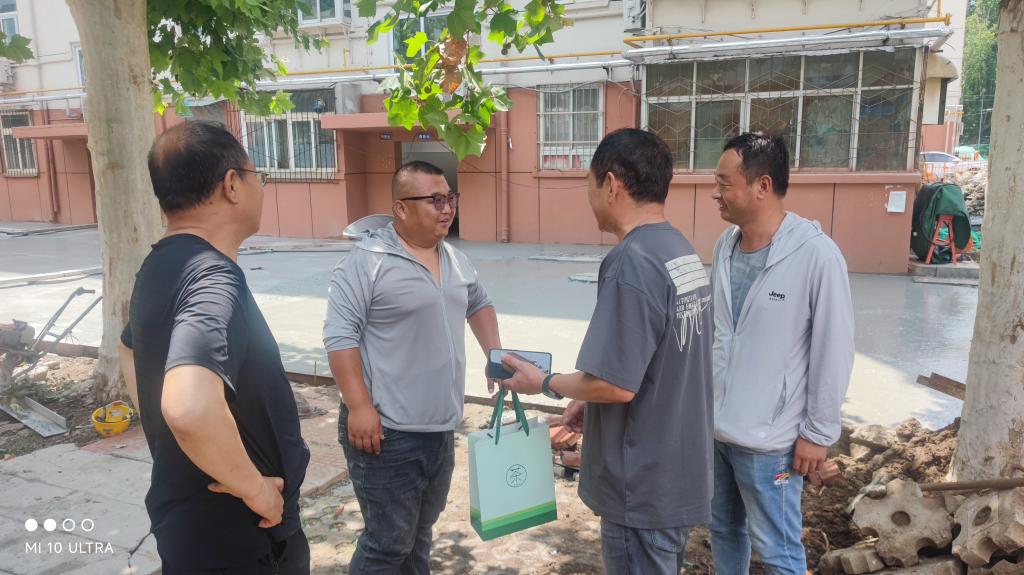 在老舊小區(qū)和雨污分流改造現(xiàn)場,施工人員正頂著烈日作業(yè)。一行人走進(jìn)施工區(qū)域,與項目負(fù)責(zé)人交流工程進(jìn)度,重點詢問安全生產(chǎn)和防暑預(yù)案落實情況。叮囑施工團(tuán)隊要科學(xué)調(diào)整作業(yè)時間,避開正午高溫時段,預(yù)防中暑事件發(fā)生,確保施工安全與工程進(jìn)度“兩不誤”。