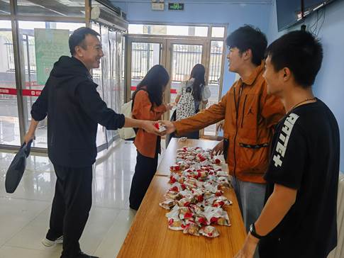 贈送月餅的活動于9月28日中午餐廳東門、西門同時舉行,由餐廳工作人員與學生代表共同為師生免費贈送,期間制作并發(fā)放月餅3000余枚。