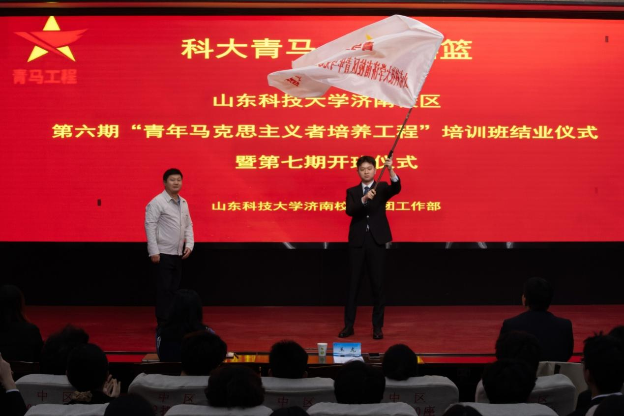 校區(qū)團(tuán)委委員王龍為第六期“青馬工程”培訓(xùn)班授旗。校區(qū)團(tuán)委學(xué)生兼職副書記趙鵬彥宣讀了《關(guān)于表彰第六期“青年馬克思主義者培養(yǎng)工程”優(yōu)秀學(xué)員的決定》。2025屆校區(qū)學(xué)生會(huì)執(zhí)行主席徐樂布置第七期“青馬工程”培訓(xùn)班工作安排。與會(huì)老師為第六期“青馬工程”優(yōu)秀學(xué)員頒獎(jiǎng)。優(yōu)秀學(xué)員代表江芃菲進(jìn)行發(fā)言。