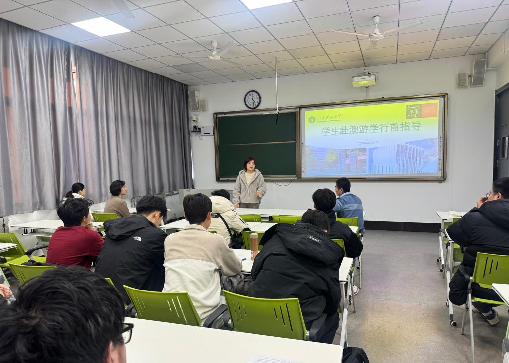 12月26日下午,校區(qū)國際交流部組織學(xué)生參加赴澳大利亞斯威本科技大學(xué)學(xué)術(shù)與文化游學(xué)行前指導(dǎo)會。校國際交流合作處副處長、濟南校區(qū)國際交流部主任吳峻青和游學(xué)項目帶隊老師及全體游學(xué)學(xué)生參加會議。
