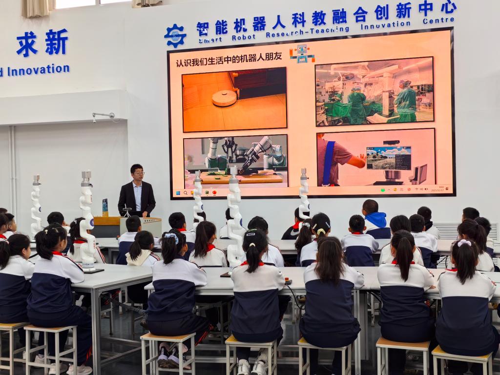 2025年11月17日上午九時,寶華小學(xué)四年級五班45名同學(xué)身著整齊校服,懷著期待走進(jìn)校區(qū)智能機(jī)器人科教融合創(chuàng)新中心,開啟了一場趣味盎然的科技研學(xué)活動。