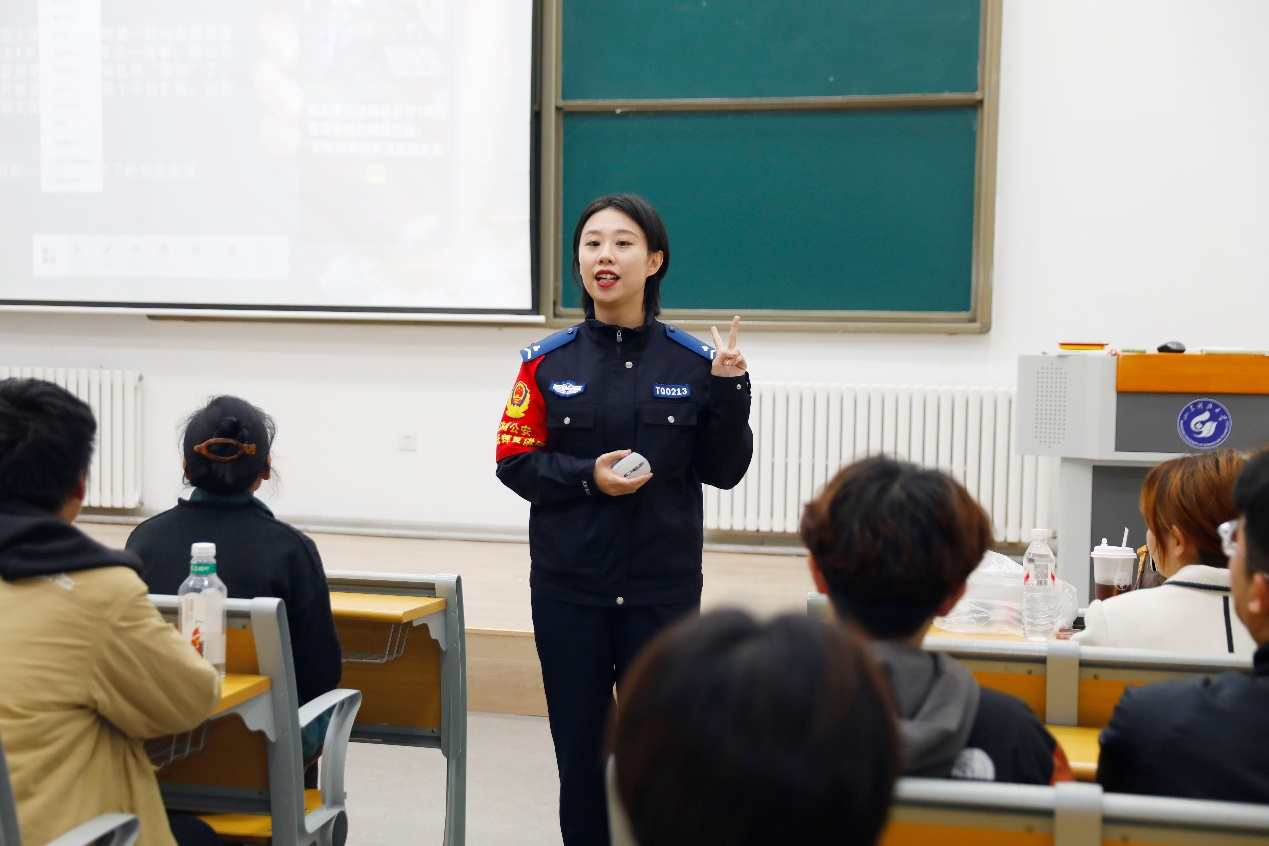 宣講現(xiàn)場(chǎng),天橋女警先鋒宣講團(tuán)團(tuán)長(zhǎng)劉小源及網(wǎng)安大隊(duì)宣講員們聚焦網(wǎng)絡(luò)空間安全,針對(duì)大學(xué)生高頻接觸的網(wǎng)絡(luò)場(chǎng)景展開(kāi)詳細(xì)講解。在網(wǎng)絡(luò)暴力防治板塊中以鮮活的網(wǎng)絡(luò)謠言案例,向師生們講解了網(wǎng)絡(luò)謠言的危害、編造散播謠言的后果以及保護(hù)個(gè)人信息安全等一系列知識(shí)。同時(shí)結(jié)合法律相關(guān)條款,明確指出網(wǎng)絡(luò)侮辱、誹謗等行為的法律后果,提醒學(xué)生不盲目轉(zhuǎn)發(fā)、擴(kuò)散未經(jīng)確認(rèn)的內(nèi)容,不做不實(shí)信息的 “傳聲筒”與“放大器”、“鍵盤(pán)俠”,也需學(xué)會(huì)留存證據(jù)、依法維權(quán)。網(wǎng)絡(luò)游戲與消費(fèi)陷阱板塊中,宣講員倡導(dǎo)理性?shī)蕵?lè),警示學(xué)生警惕付費(fèi)充值騙局,保護(hù)個(gè)人賬號(hào)安全。同時(shí)還特別提醒同學(xué)們?cè)诰W(wǎng)購(gòu)時(shí)一定警惕消費(fèi)陷阱,正規(guī)平臺(tái)下單,保護(hù)好支付密碼及個(gè)人地址等信息,并告誡同學(xué)們“比湊滿減更重要的是安全!”。