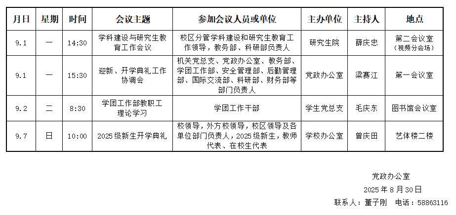 濟(jì)南校區(qū)第一周會議安排