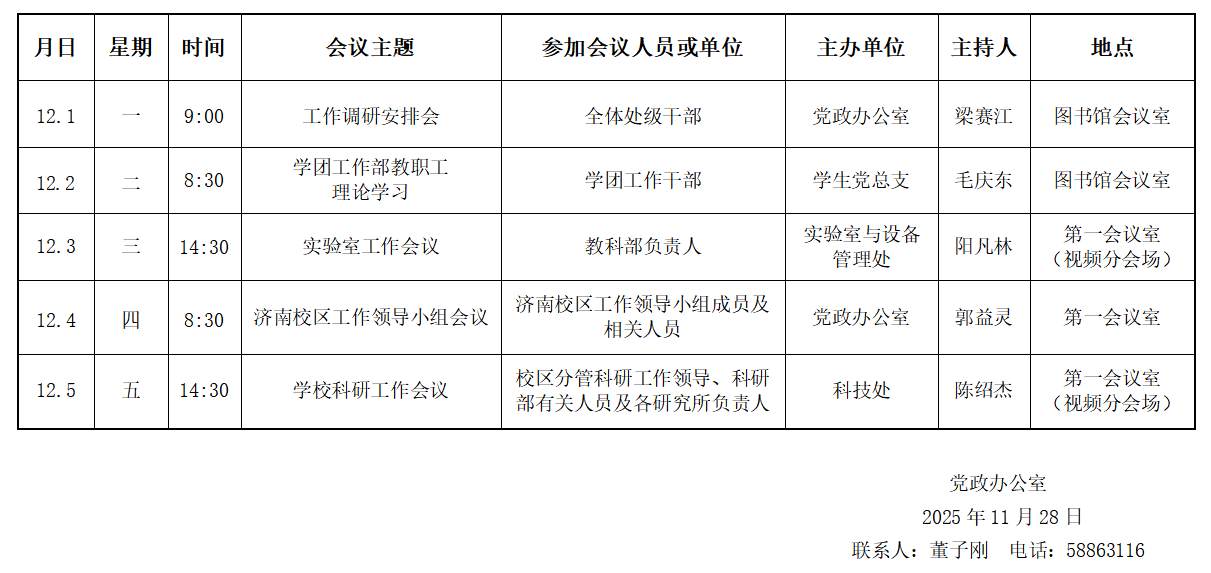 濟(jì)南校區(qū)第十四周會(huì)議安排