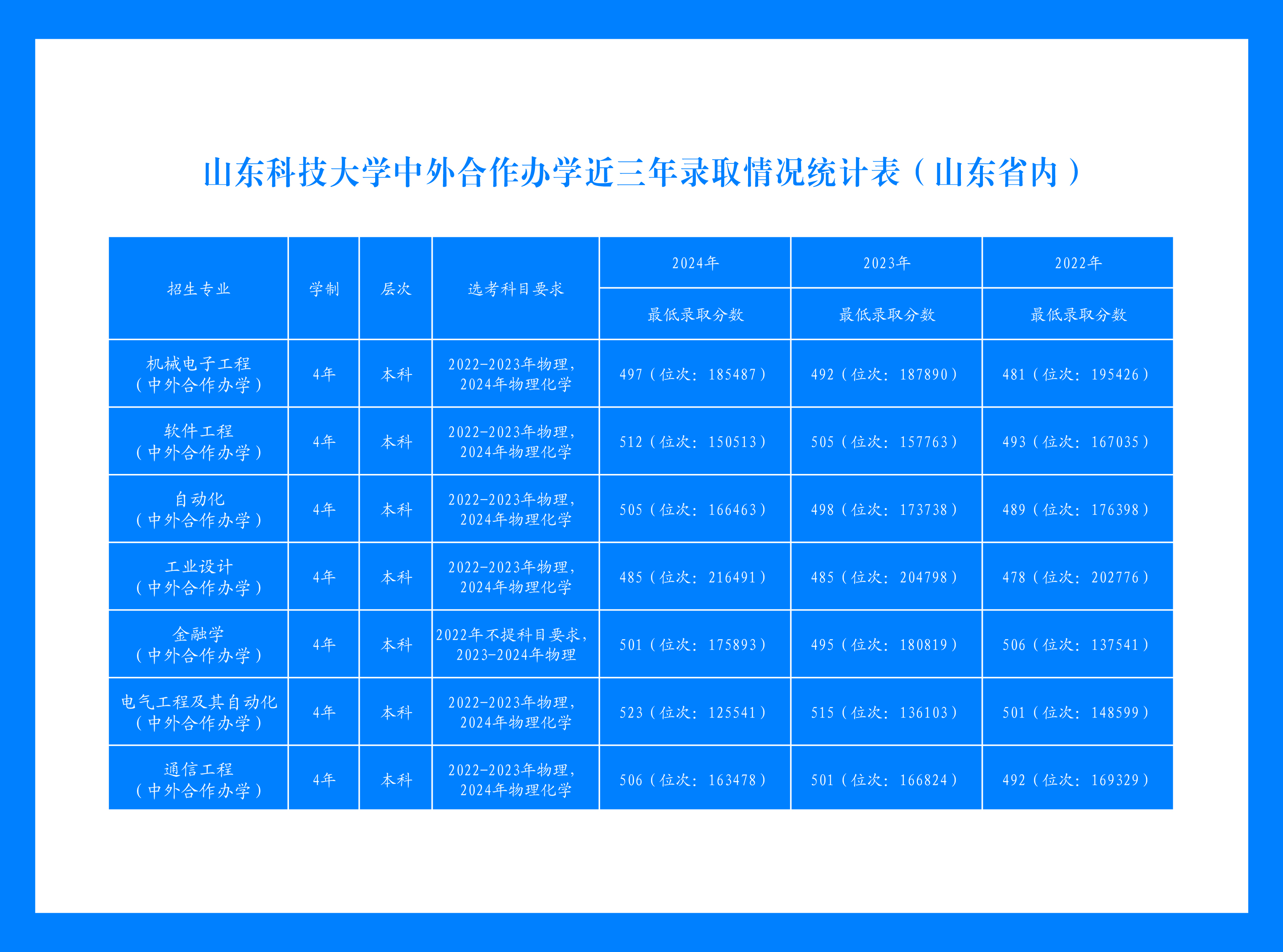 山東科技大學(xué)中外合作辦學(xué)近三年錄取情況統(tǒng)計(jì)表(山東省)