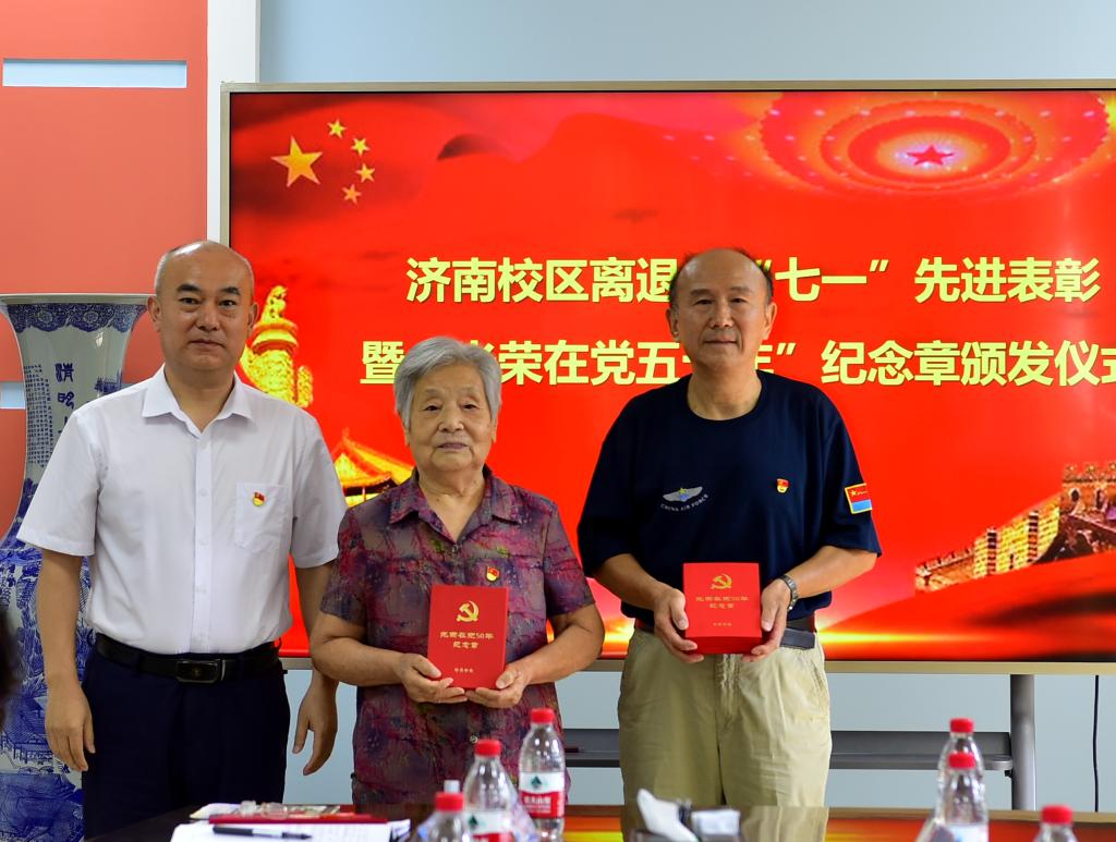 仉興泉宣讀了濟南校區(qū)“七一”受表彰名單和“光榮在黨50年”人員名單。